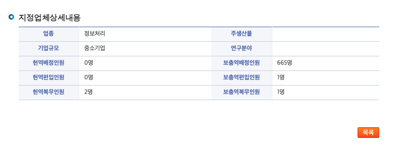 이 곳에서 병역 일터로 등록 된 기업들의 목록 및 현역 / 보충역 편입 및 재직 현황, 채용 진행 여부를 확인할 수 있다.
