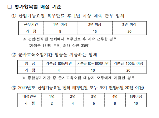 - 기존 산업기능요원이 해당 회사에서 복무를 마친 이후에도 1년, 2년, 3년 이상을 더 다니면 가점